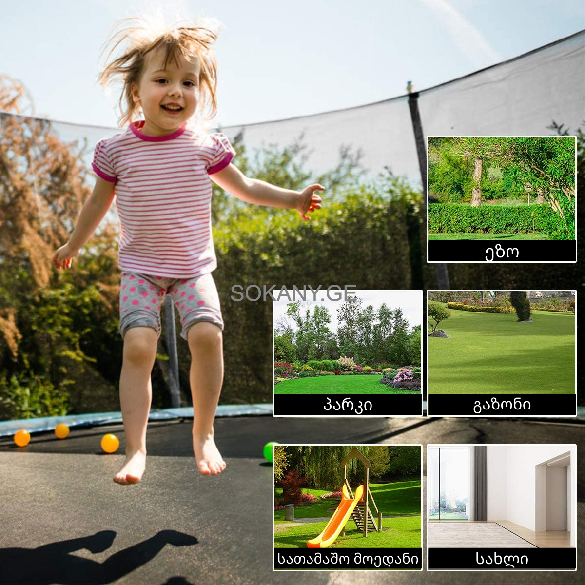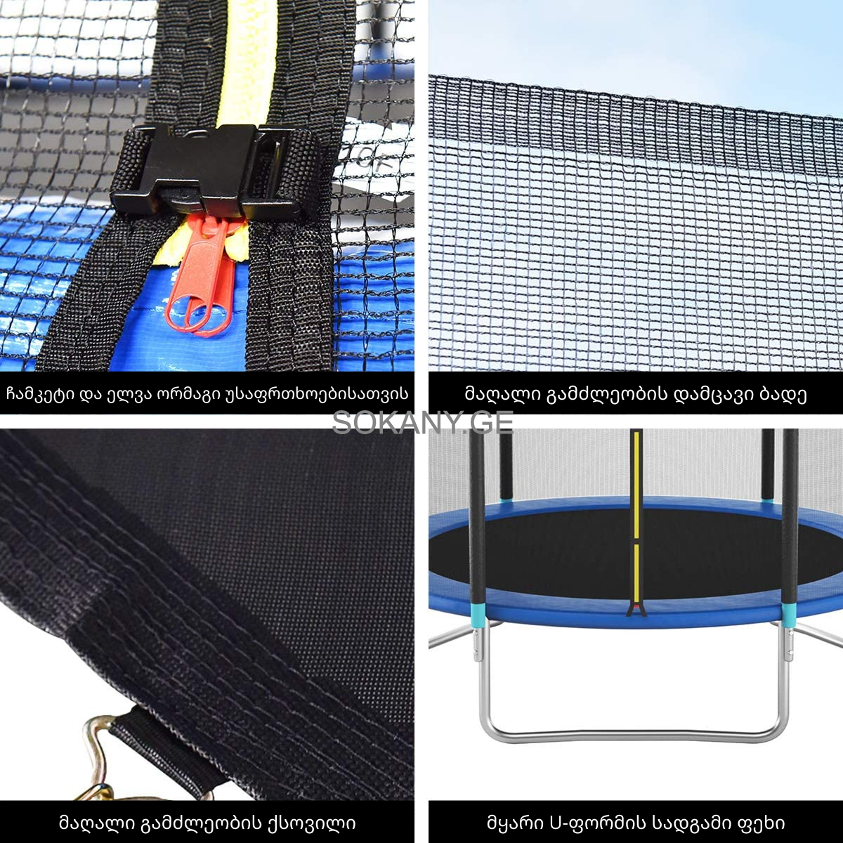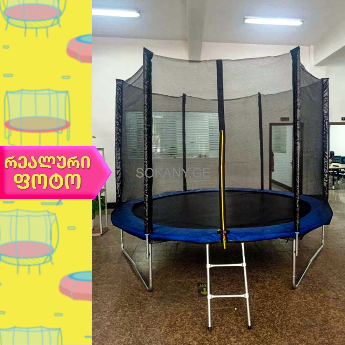 დამატებითი ინფორმაცია:ბატუტი დამზადებულია მეტალის მყარი კონსტრუქციისაგან. რკინები დაფარულია ვინილის სქელი "დარბილებებით". უსაფრთხოების ბადე იკვრება როგორც ელვა შესაკრავით, ასევე 3 ღვედით