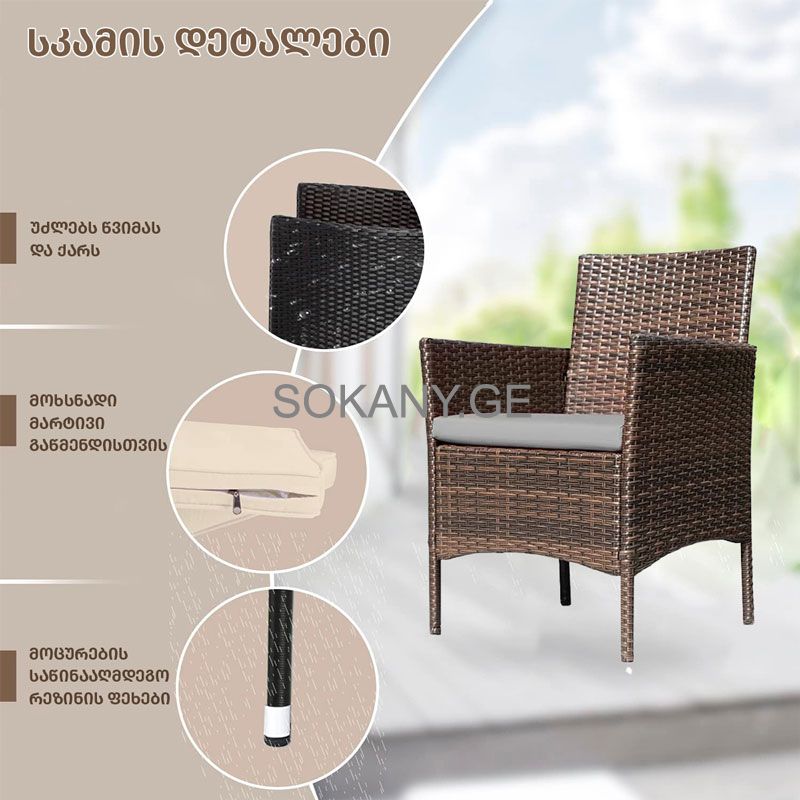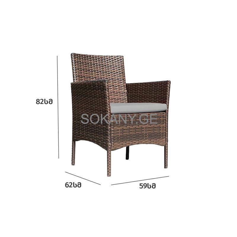 დამატებითი ინფორმაცია:მაღალი ხარისხის რტანის სტრუქტურა, გამჭვირვალე მინის ზედაპირი, რბილი და მოსახსნელი ბალიშები, ამინდის მიმართ გამძლე და მარტივად მოსავლელი, იდეალურია ეზოს, ტერასის ან დიდი აივნისთვის