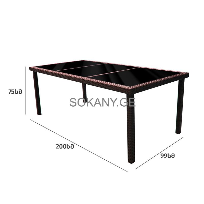 ზომები:მაგიდა: 200x75x99 სმ / სავარძელი: 59x88.5x62 სმ