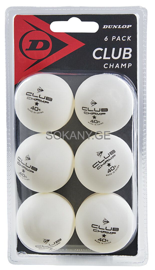 მაგიდის ტენისის ბურთი 6 ცალი Dunlop CLUB CHAMP 1 star 6pcs White
