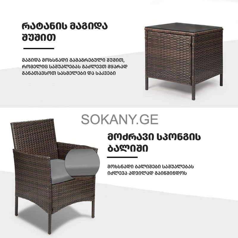 კომპლექტაცია:2ც სავარძელი, 1ც მაგიდა