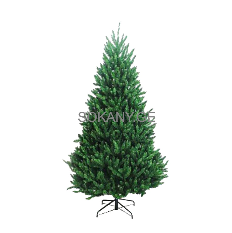 დამატებითი მახასიათებლები:სადა მწვანე ნაძვის ხე გამძლე დრეკადი მეტალის ტოტებით და ჯანმრთელობისთვის უსაფრთხო მასალისგან დამზადებული წიწვებით. მეტალის მყარი სადგამით და მთავარი ღერძით.