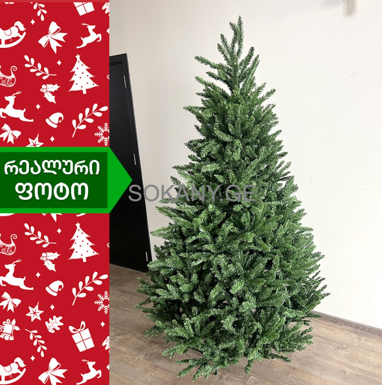 დამატებითი მახასიათებლები:პრემიუმ ხარისხის, დაბურული მწვანე სადა ნაძვის ხე გამძლე დრეკადი მეტალის ტოტებით და ჯანმრთელობისთვის უსაფრთხო მასალისგან დამზადებული წიწვებით. მეტალის მყარი სადგამით და მთავარი ღერძით.
