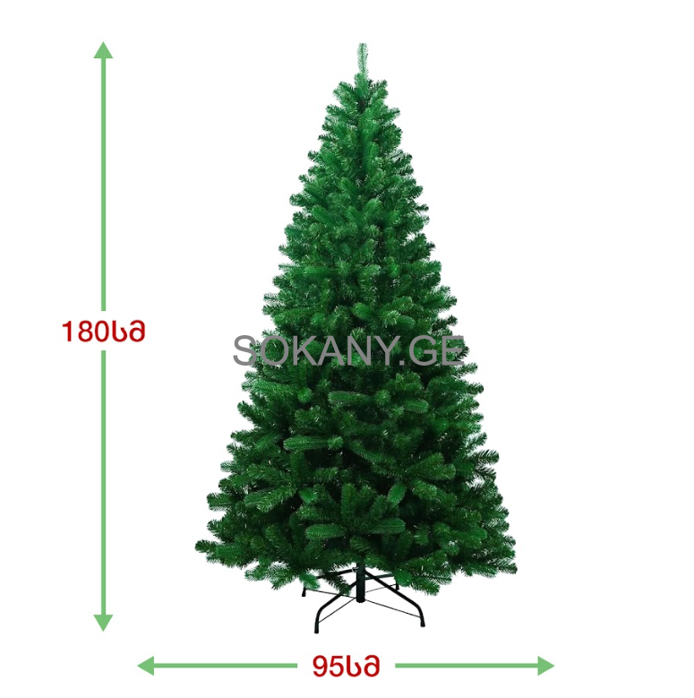 დამატებითი მახასიათებლები:სადა მწვანე ნაძვის ხე გამძლე დრეკადი მეტალის ტოტებით და ჯანმრთელობისთვის უსაფრთხო მასალისგან დამზადებული წიწვებით. მეტალის მყარი სადგამით და მთავარი ღერძით.