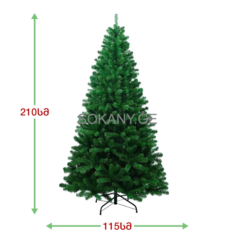 დამატებითი მახასიათებლები:სადა მწვანე ნაძვის ხე გამძლე დრეკადი მეტალის ტოტებით და ჯანმრთელობისთვის უსაფრთხო მასალისგან დამზადებული წიწვებით. მეტალის მყარი სადგამით და მთავარი ღერძით.