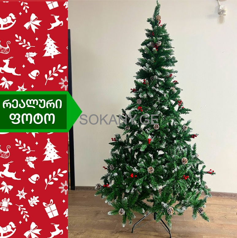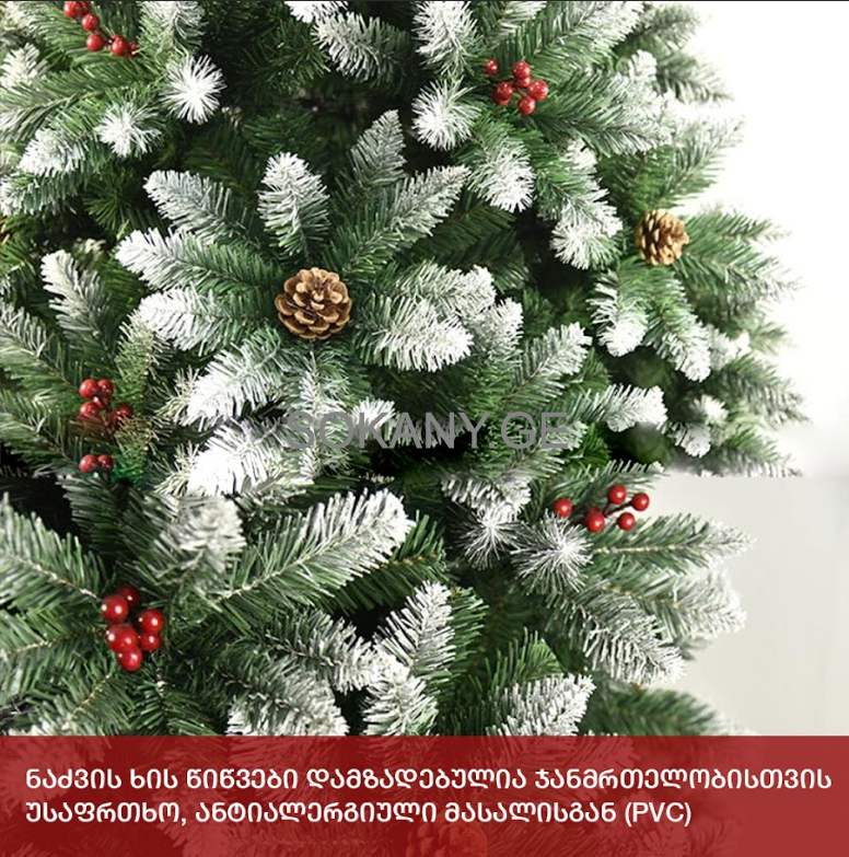 დამატებითი მახასიათებლები:ნაძვის ხე გამძლე დრეკადი მეტალის ტოტებით და ჯანმრთელობისთვის უსაფრთხო მასალისგან დამზადებული წიწვებით. მეტალის მყარი სადგამით და მთავარი ღერძით.