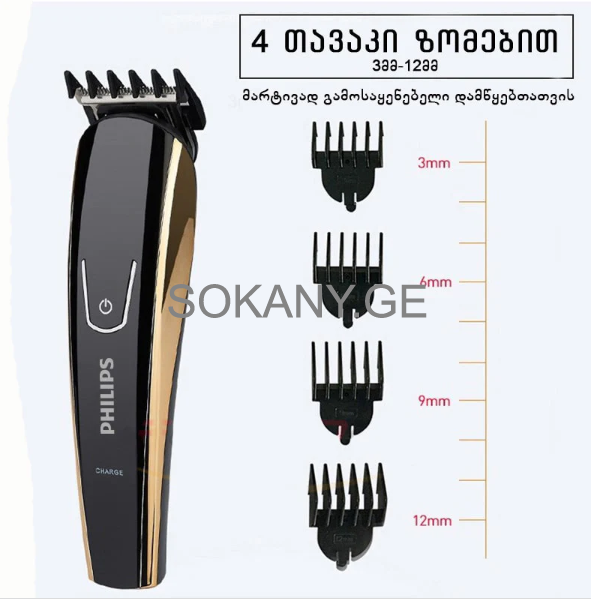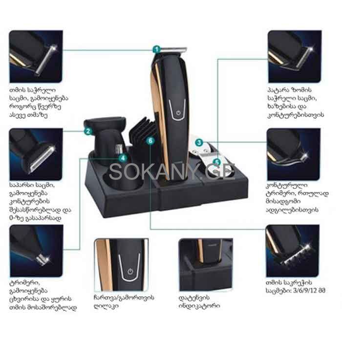 კომპლექტაცია:თმის საჭრელი/წვერსაპარსი/ცხვირისა და ყურის ტრიმერი/კონტურის თავაკი
