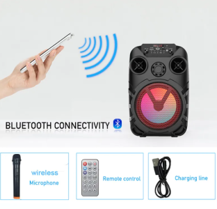 დამატებითი მახასიათებლები:პულტი/ხმის რეგულირება/LED განათება, კომპაქტური დიზაინი მძლავრი ხმის სისტემით